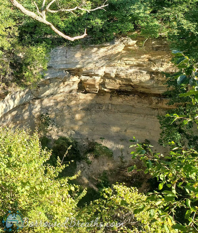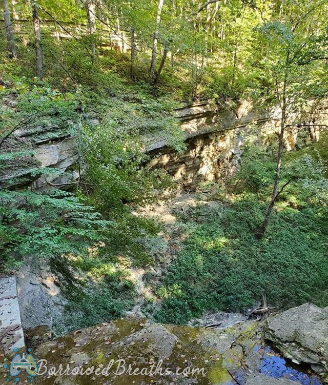 We found Clifty falls bone dry, but Little Clifty had a bit of water to see. The two falls aren’t far apart. Getting from one to the other involves a bumpy trail and even more stairs. If you’re strong enough to carry your own O2 around… and only require low liters per minute. Then you can probably handle it. But If your in need of anything with wheels to assist you… I wouldn’t bother.