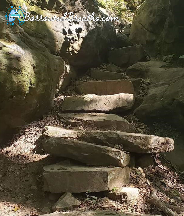 Ninety eight percent of the trail could probably be done with an O2 cart. The problem being that the 1%… is stairs made out of randomly shaped stones. Awkwardly placed in a narrow crevice. Plus the entire trail is within the small canyon. So once your in, there is no way out except by trekking up hill. And hills are simply one of the worst things in the world when your on supplemental oxygen.