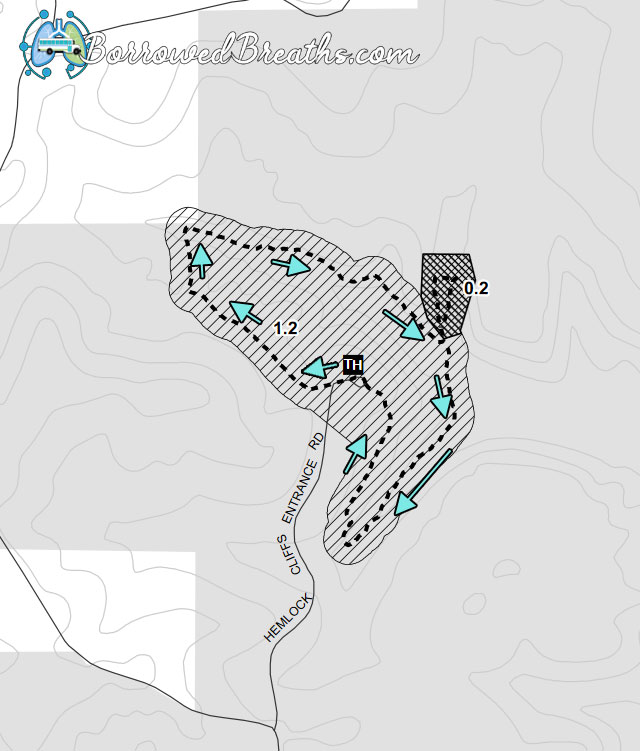 If you decide to give Hemlock Cliffs a try, I suggest following the arrows. Going this way will provide a long drawn out decline. Followed by level terrain. And then a steep but short climb up some rocks back to the parking lot. Where hopefully you’ll have a fresh O2 tank waiting. We went the opposite way. Meaning a long trek up a gradual incline that was nearly to much for one of my friends.