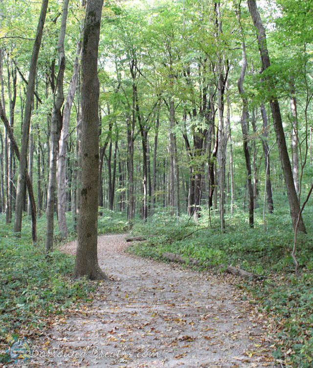 The trail labeled “easy” that I ventured down. Appeared to be labeled correctly. At least for healthy folks. Though what is easy and what is hard, can vary greatly from one pulmonary patient to the next. But it was relatively, flat, level, and free of debris. So carried or carted oxygen shouldn’t be a hindrance. And even a wheel chair with the proper tires could probably make the trek with little issue. My biggest concern would be the lack of places to rest and catch one’s breath.