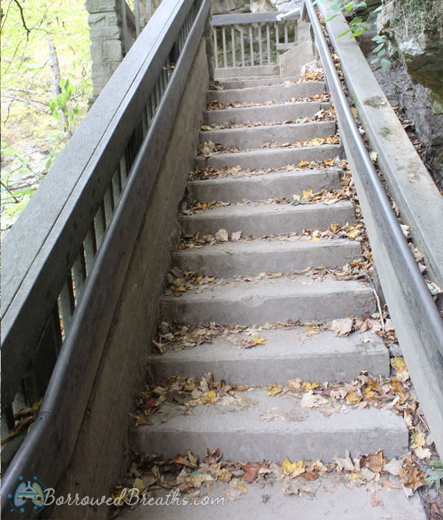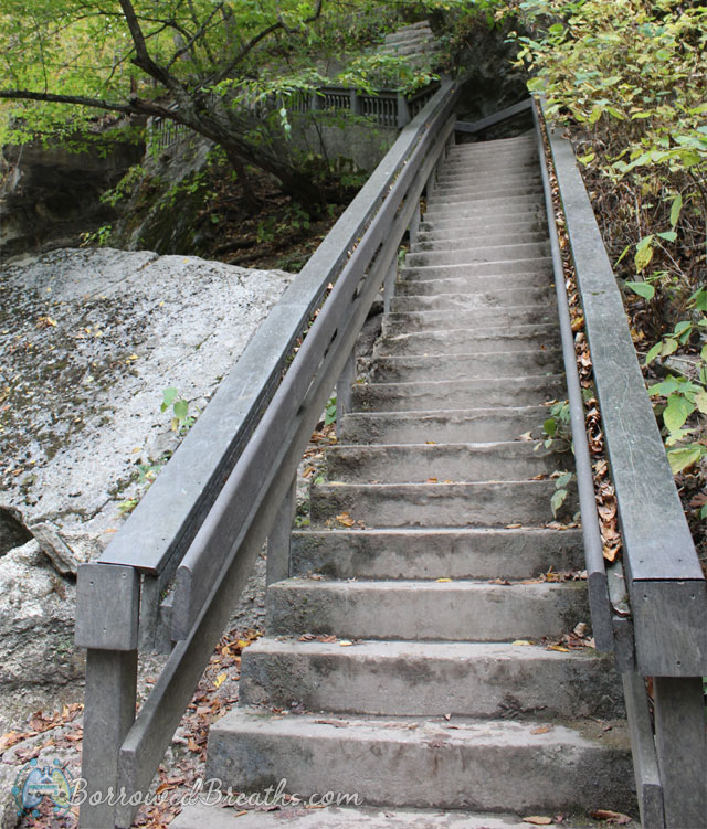 But if you stop before venturing down the curved staircase. The steps are not quite so insurmountable when heading back up. And you can still enjoy seeing the falls from above. Having skipped the vast majority of stairs.