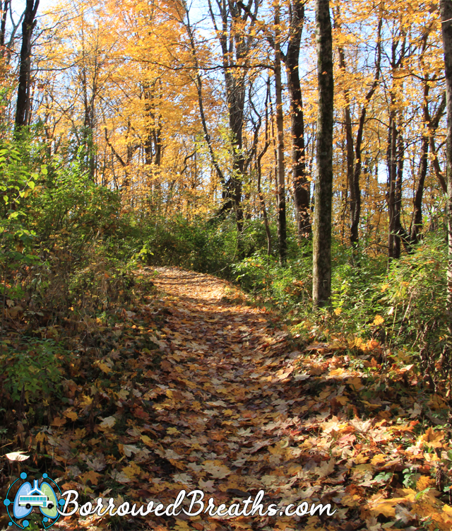 However; if you’re not yet on supplemental oxygen, are still steady on your feet, and aren’t yet slowed down by hills… or if you are post transplant. Then I would highly recommend Southwestway park. I went in the morning, but not terribly early. And though I saw several people in the parking lot. Once I was hiking, I didn’t cross paths with a single person. The park feels as if it were much farther away from civilization than it actually is. And the trails crisscross quite a bit. Making it easy to adjust the length of your hike. It’s not worthy of detouring a trip to see. It doesn’t compare to a state or national park in that regard. But there were parts just as pretty… And if you live in the Indy area it is worth a visit.