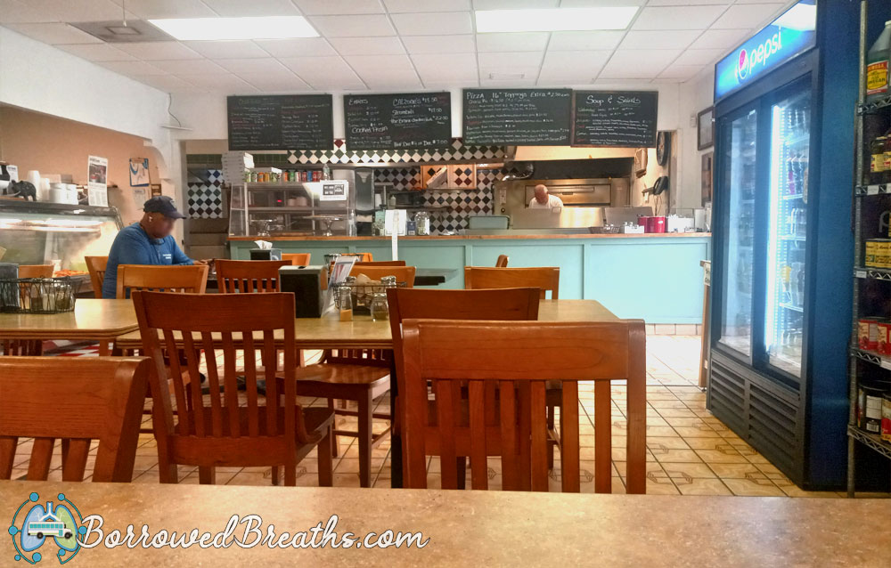 And my first stop is worth a review. Leone’s Italian Deli & Pizzeria is just what the name describes. It is a small store with varies Italian grocery items. Along with a deli counter and pizza ovens. And what comes out of those ovens is great. Just what New York style pizza should taste like. Everything is made from scratch. With a slice of cheese and a can of pop costing me about four bucks. But for just a little more there are a load of toppings to choose from. Including Italian sausage that’s made in house.