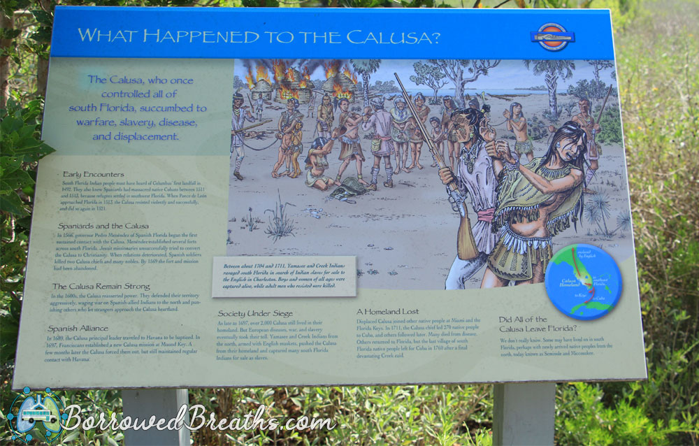 The Island was inhabited many generations ago by the Calusa (Meaning fierce). A name earned through being a pretty formidable bunch. The Yamasee and the Muscogee Creek however, were apparently tougher. As they managed to kill, enslave, and displace all of the Calusa. With any survivors probably becoming part of the eventual amalgamation of tribes known as the Seminole.